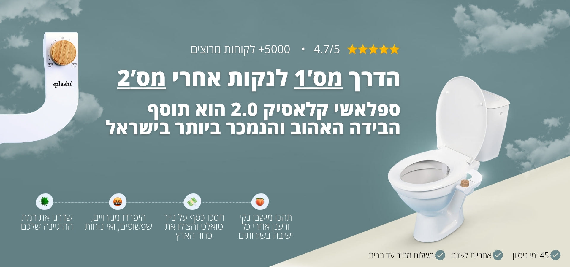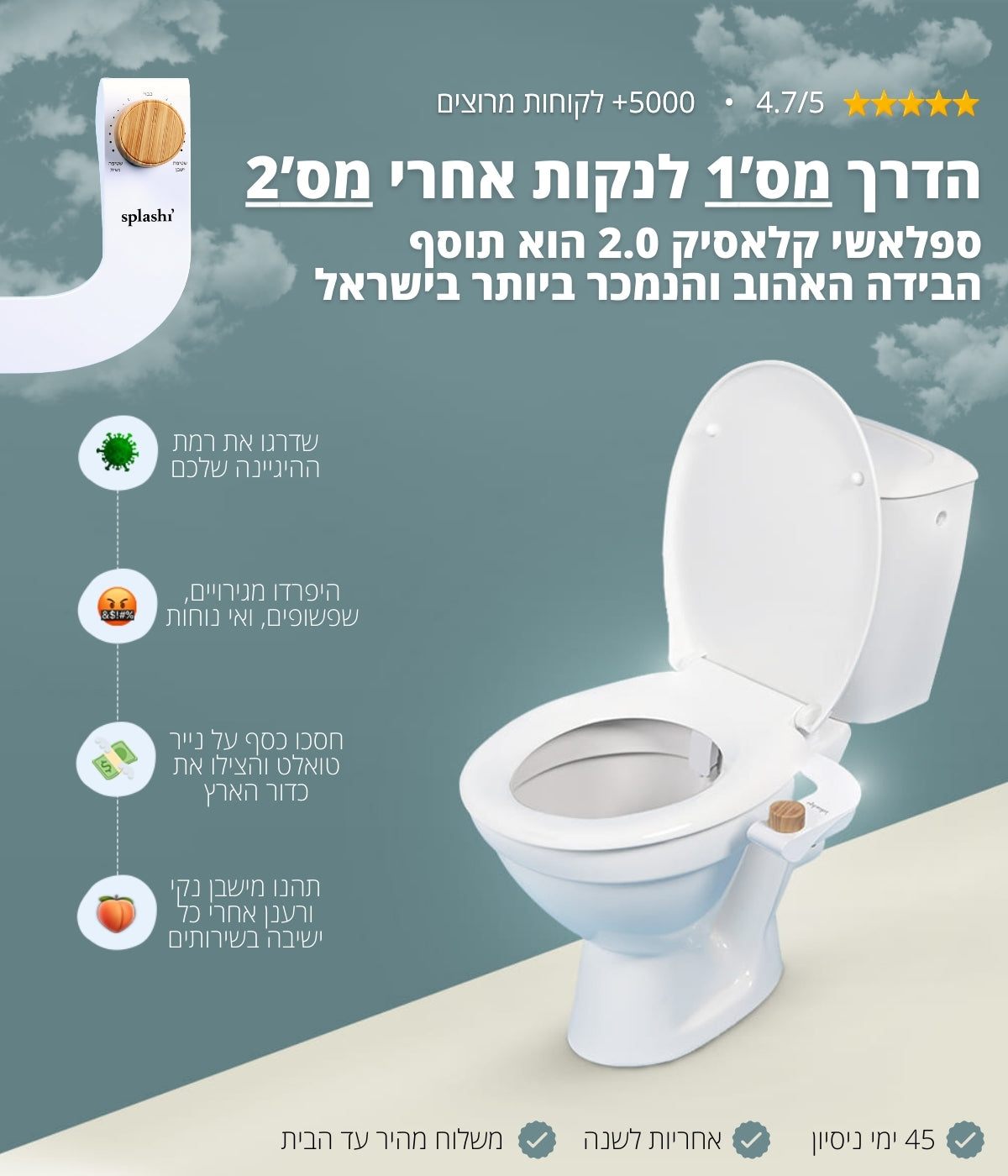 ספלאשי משתמש בליטר מים כדי לטפל כראוי באחוריים הקדושים שלך, בעוד שדרושים עד 178 ליטר מים כדי ליצור רק גליל אחד של נייר טואלט!